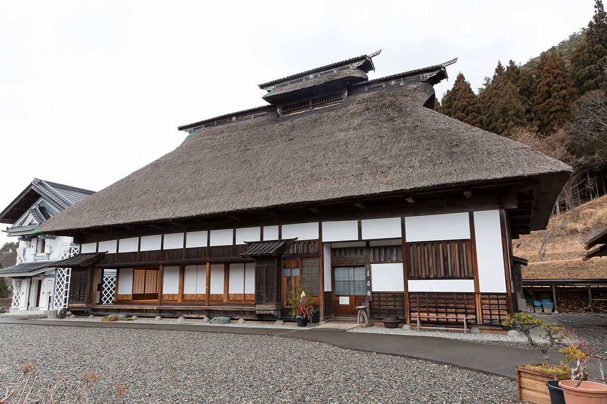 格式のある家の象徴である軒の深い〝せがい造り〞を取り入れた母屋。隣にはなまこ壁の土蔵も立つ。