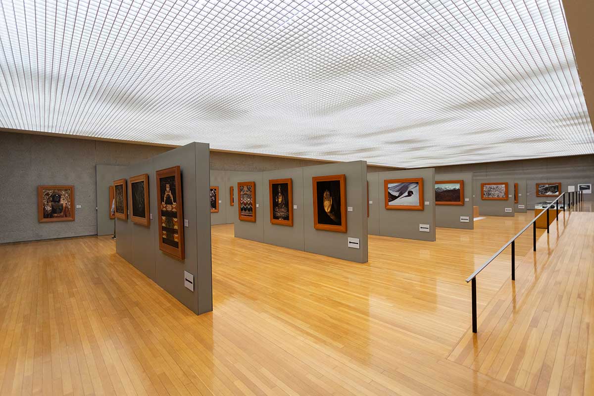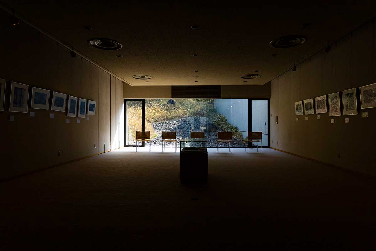 主要展示室には「古寺巡礼」シリーズなど、主に大型の作品を展示。ソファの設置もあり、ゆっくり観覧できる。
