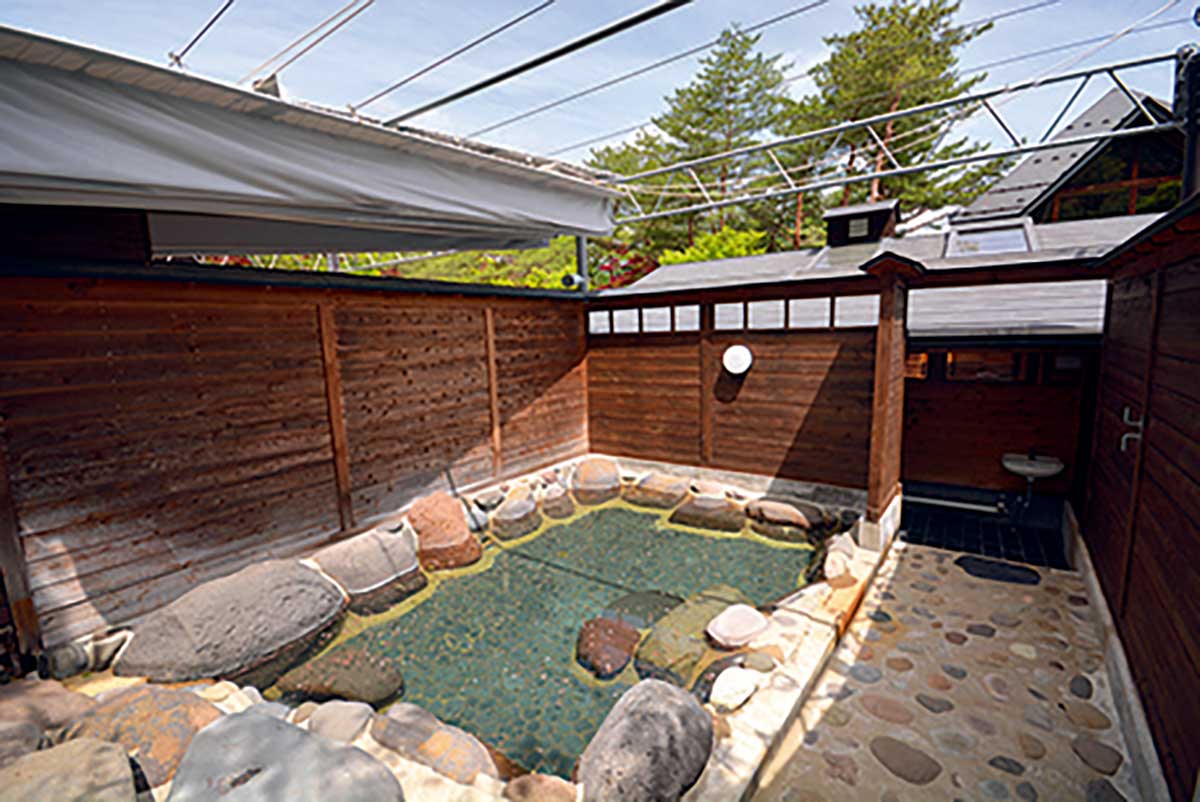 貸切専用の「鹿乙の湯」、庭園散策中にひと休みできる足湯といった温泉に浸かってのんびりと過ごすことができる。