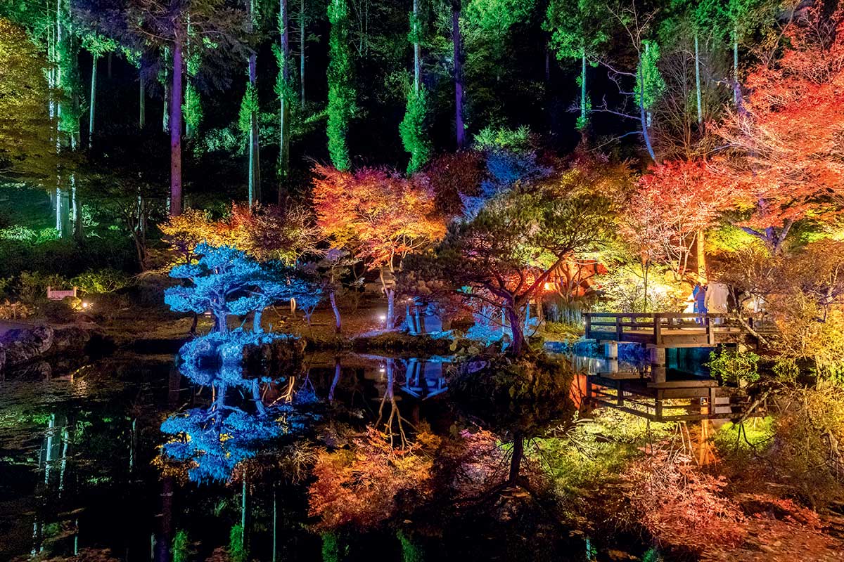 紅葉シーズンには「秋保ナイトミュージアム」を開催。小屋館跡庭園で神秘的な夜のもみじを堪能しよう。