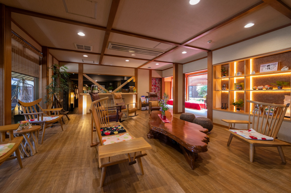 チェックイン&アウトの場にもなるお休み処「逢縁」。奥には「音蔵」がひそむ。