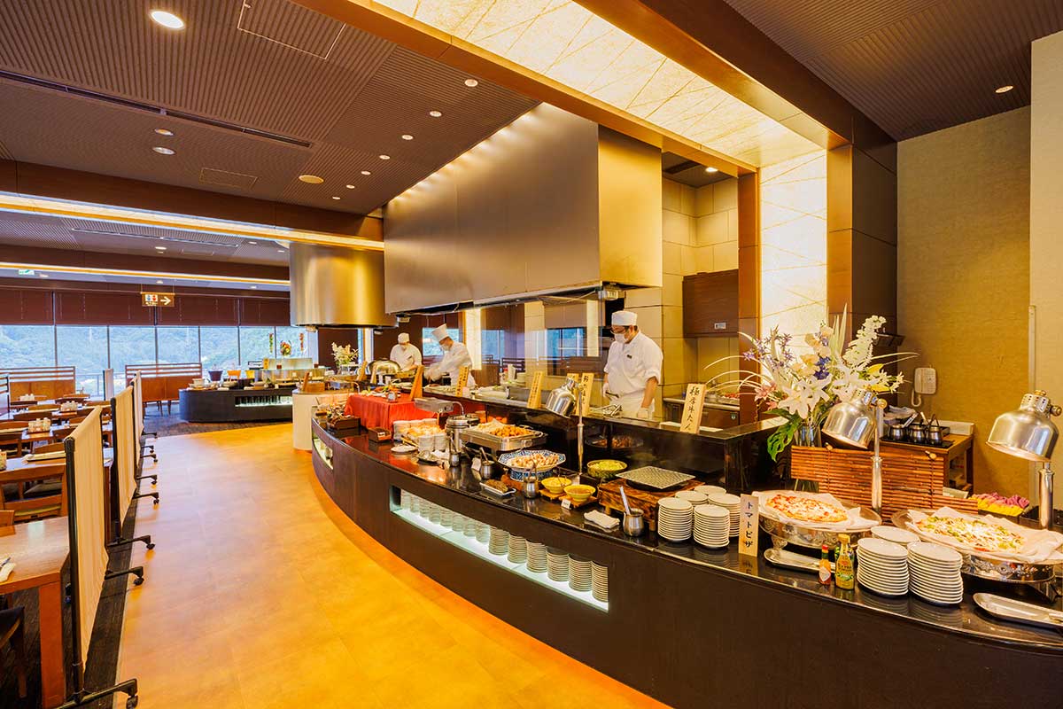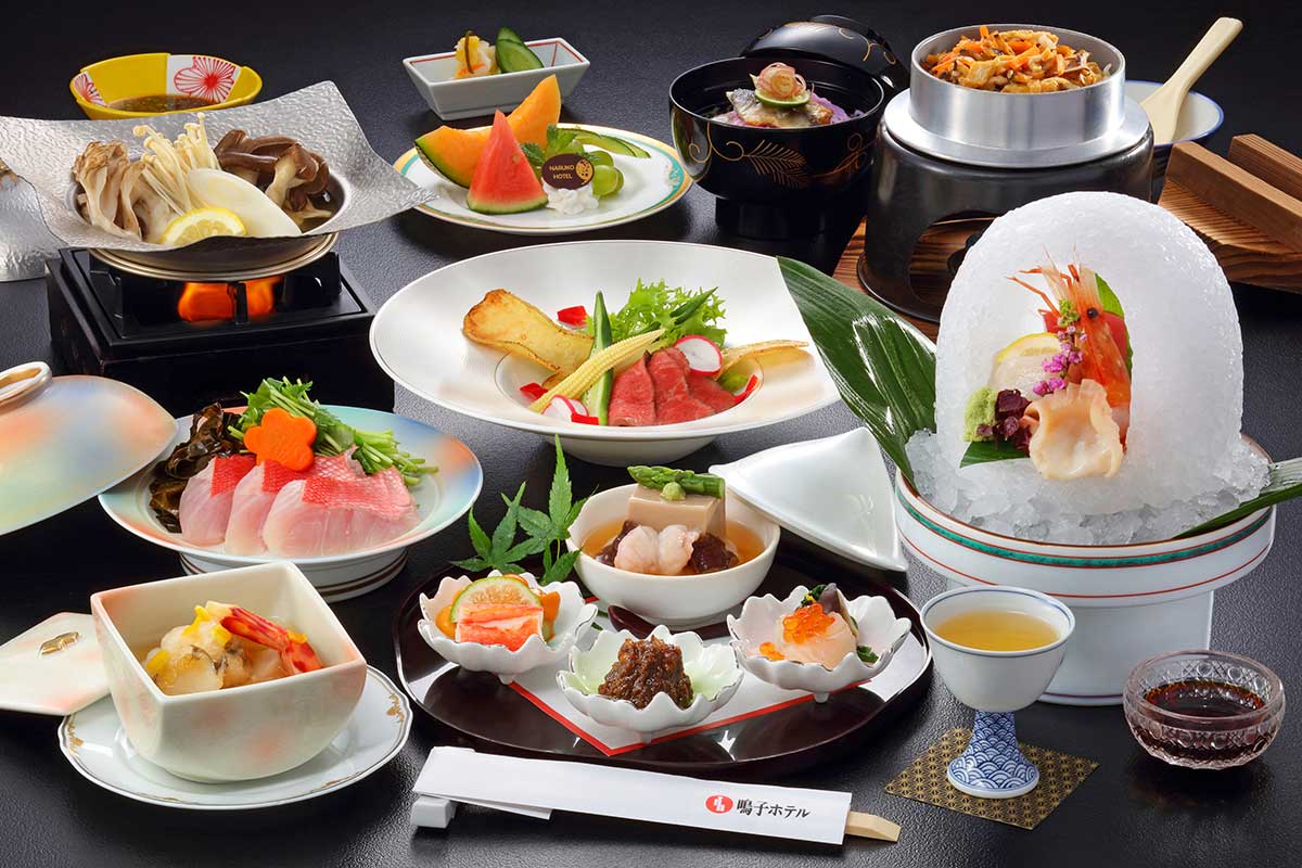 繊細な仕立てが光る会席膳をゆったりと堪能するも良し、バイキングで好きな物を心ゆくまで食べつくすも良し。
