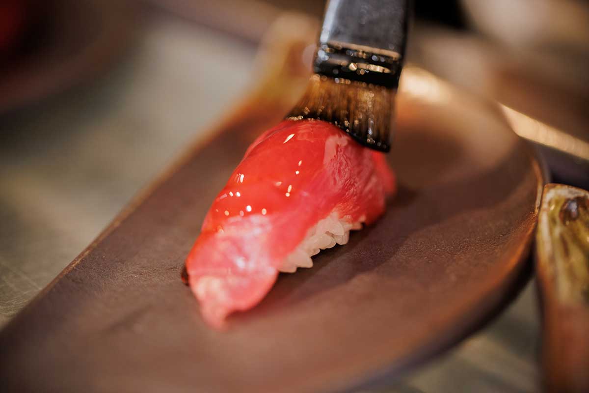 きめの細かい本鮪の赤身は秋田産。煮切りに使う日本酒は季節によって変える。