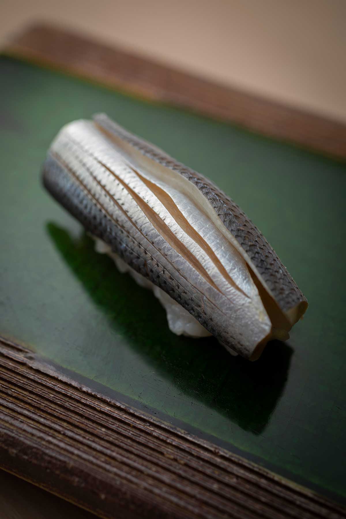 「巧スタイルでいきたい」のだ、と彼は言う。父から受け継ぐ江戸前の技を背負いつつも、自分にしか握れない無双の握りを実現したいのだと。創業は昭和46(1971)年。父である佐藤成人さんが興し、自らの名と息子である巧さんの名から一文字ずつ取って『成巧寿司』と名付けた。「すし屋を継げ、と言葉では言わなかったけれど、小学生でご近所への出前持ちもしたし、中学1年には穴子の下ろし方を教わりましたね」と巧さんは振り返る。しかしまっすぐにすしの道へと進んだわけではない。調理師学校で料理を学び、市井でも日本料理店や割烹に学んだ。父の立つ漬け場に共に立つようになったのは28歳だったという。今年5月、『成巧寿し』は大きな変化を起こした。『成巧寿司 東口店』の開店に伴い、東口には成人さんが、宮町の本店には巧さんが立つこととなったのだ。仕入れや仕込み、50年の美点は共有しつつ、巧さんは慣れ親しんだ宮町の店で「巧スタイル」の闊達を展開している。