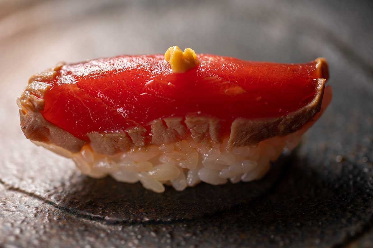 本マグロの赤身はヅケで。特有の酸味と豊かな香りに赤身の本質を知る。