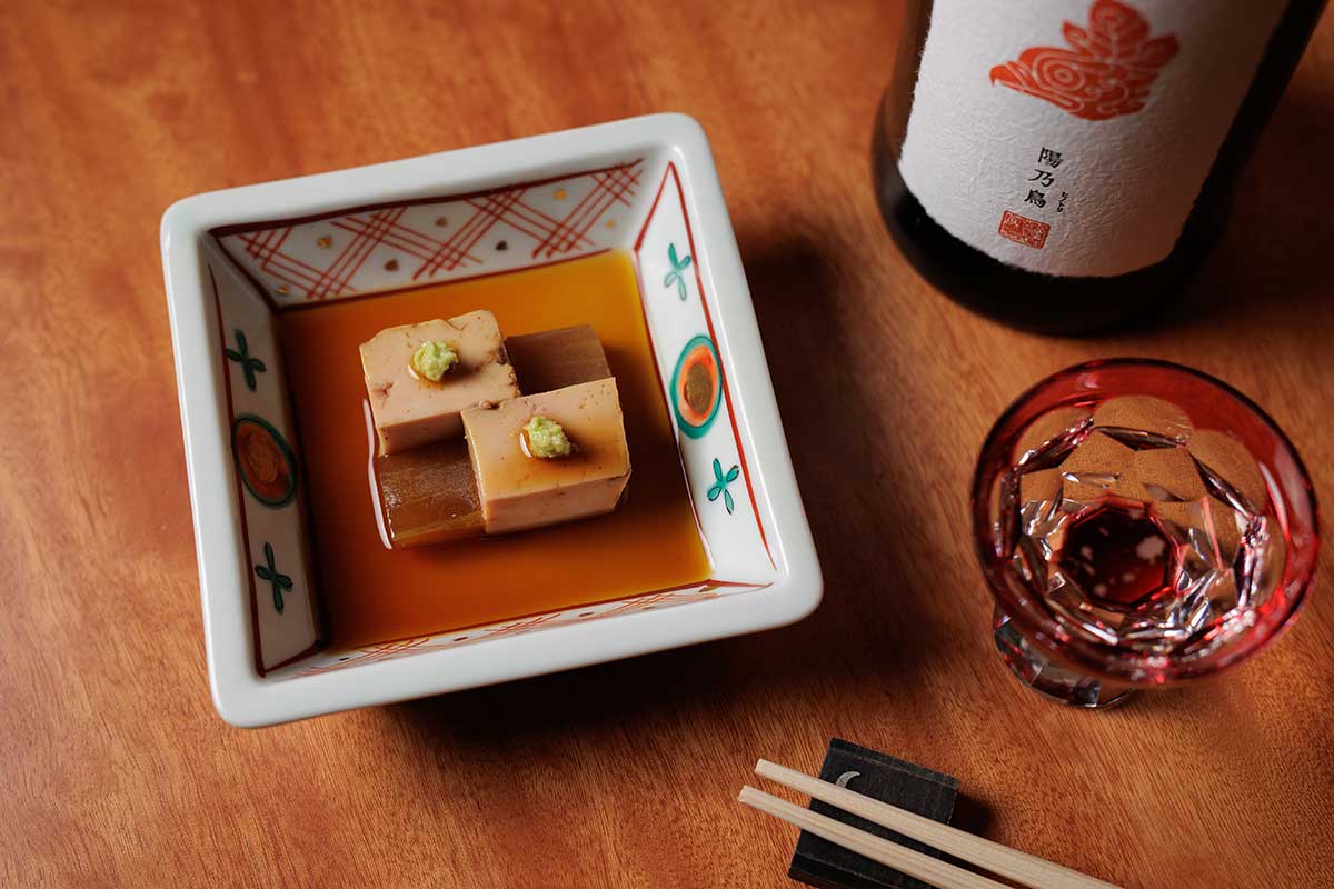 あん肝と奈良漬。貴醸酒「新政 陽乃鳥」(一杯・800円)とともに。