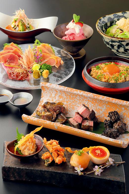 「炙りいわいどりの炭火焼セリ鍋」はコース(6500円)限定で提供されるメインメニュー。日本種も含む120分飲み放題(+1000円)も注目。