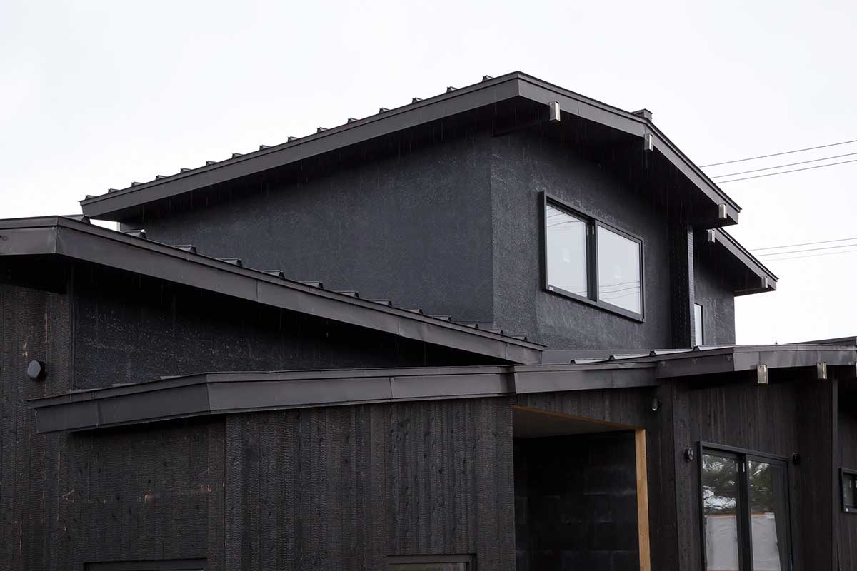 表面を炭化させて強くした、焼杉を外壁に使用。取材時は開業に向けて工事の真っ最中だった。