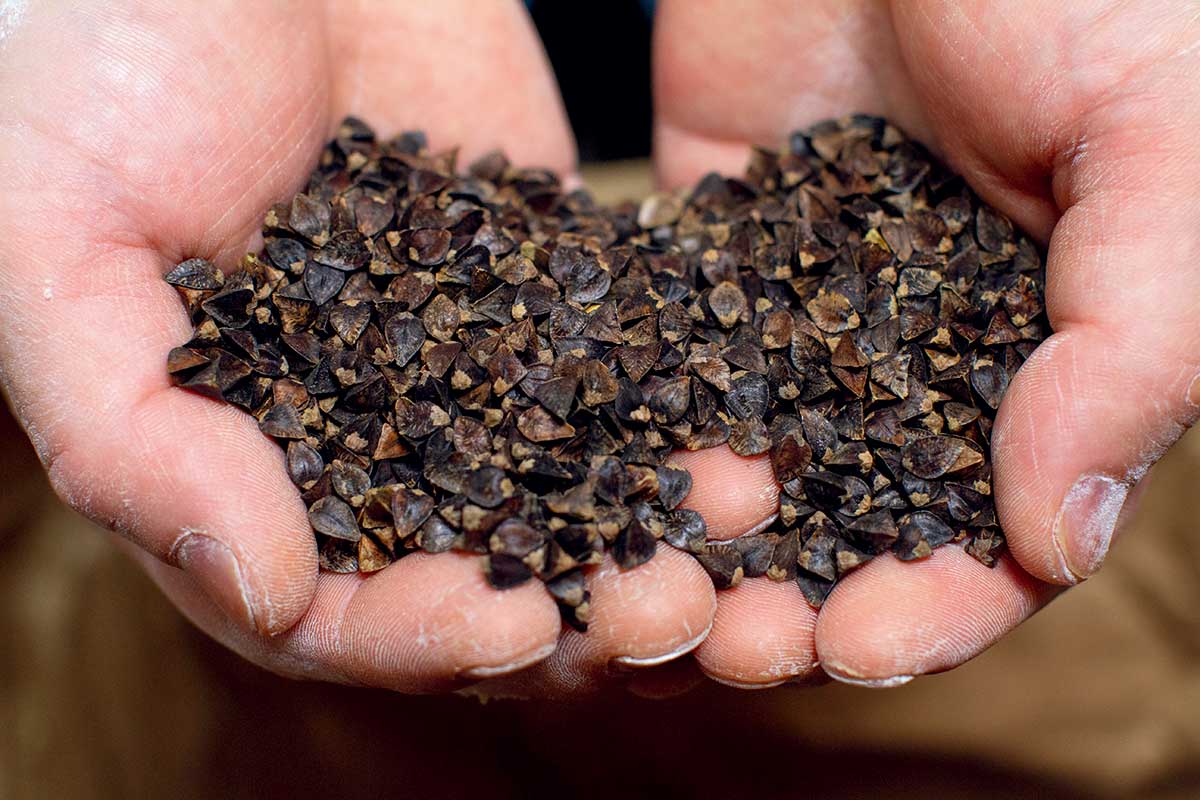 鳴子川渡産の玄そば。玄そばは川渡の生産者が低温保管しており、店で必要な都度取りに行っている。