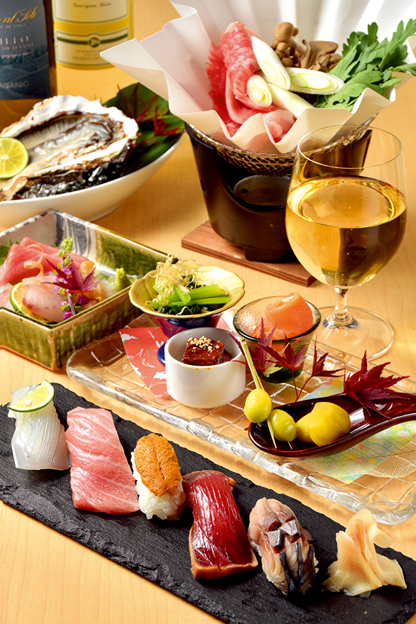 この季節には魚介はもちろん、せり鍋や黒毛和牛のしゃぶしゃぶ等、温かい料理もうれしい。