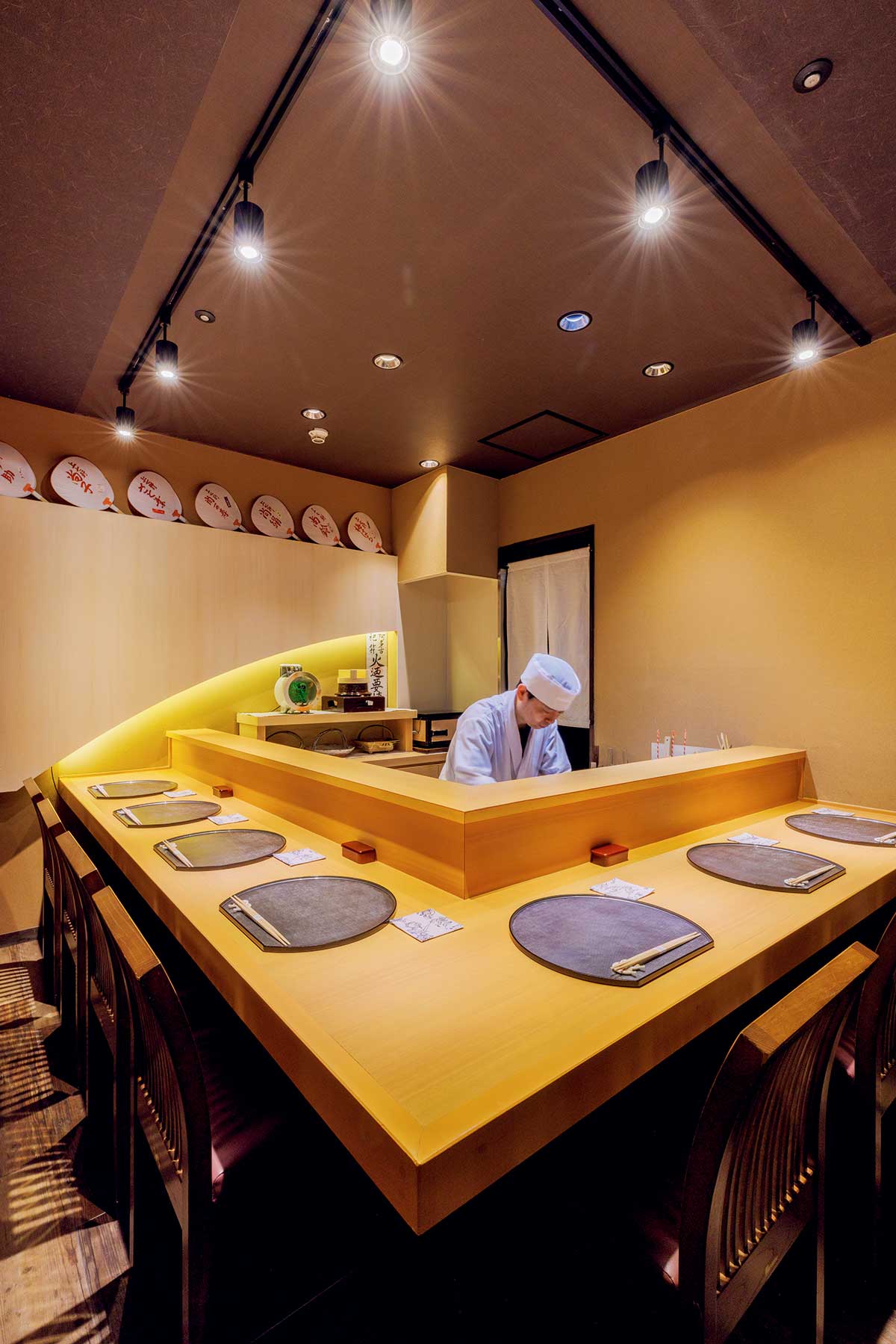 店内の設えにも、詫びや寂をたたえた磁器や陶器、うちわ、坪庭など風情を感じられる演出がそこかしこに。