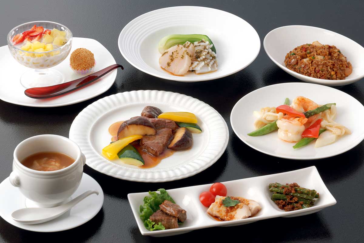 「フカヒレとズワイガニのスープ」など専門シェフの作る本格中華が並ぶ「中華コース」。