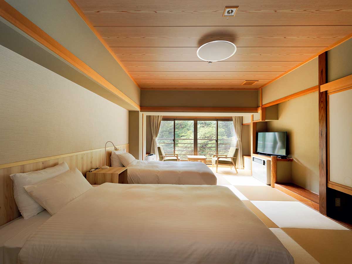 モダン和室にツインベッドの「和ツイン」も、現代的な湯治を楽しむミドル層から人気を集めている。