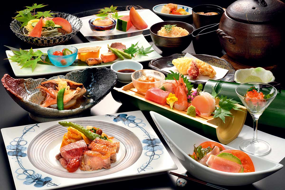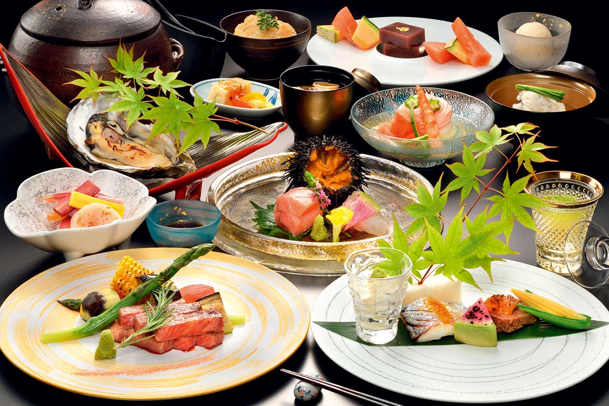 「紫水亭」の食事処「料亭 桃里」では、水をテーマにした創作和食が堪能できる。