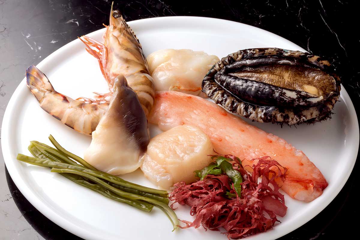 海鮮は、活アワビなど三陸のものを中心に彩り豊かに取り揃える。