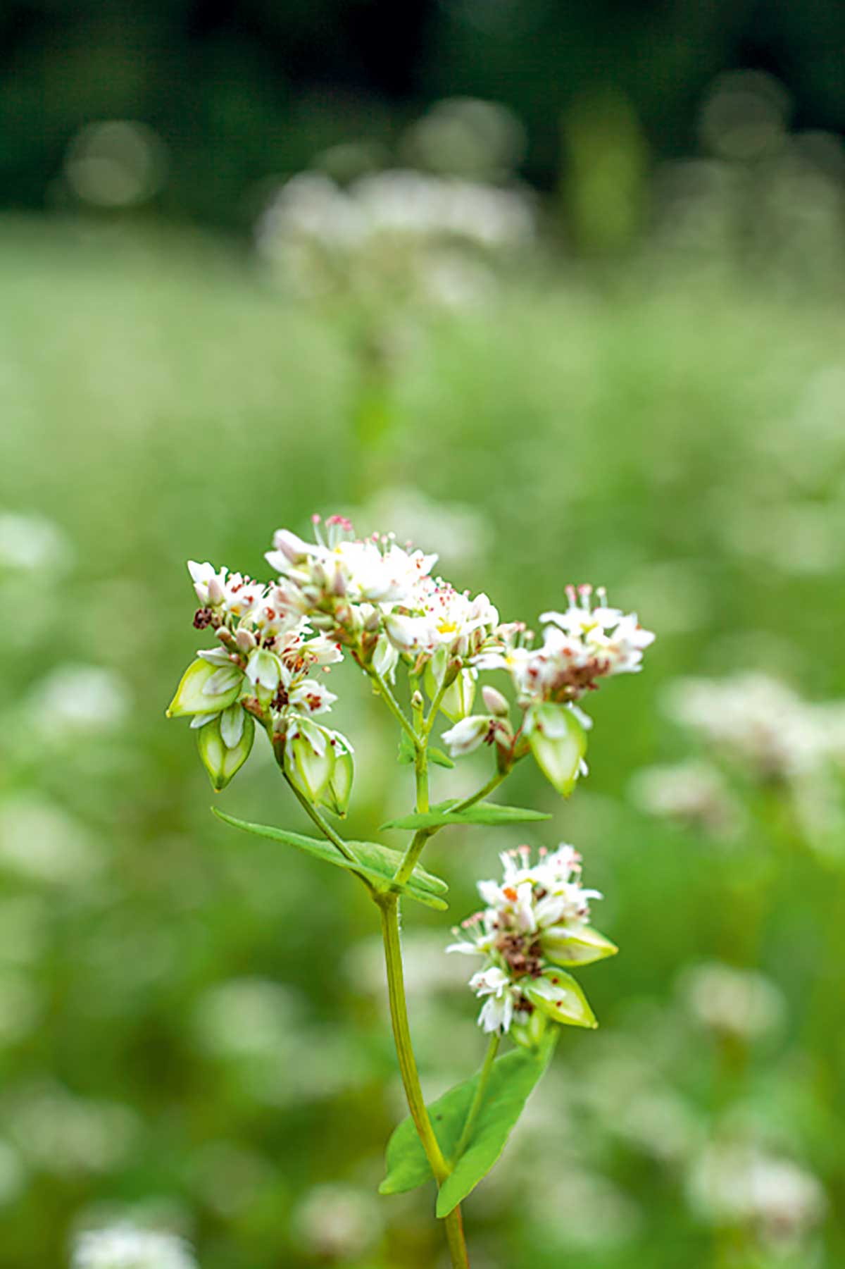 そばの白く可憐な花。宝栄牧場のそば畑では例年8月下旬頃に咲き、10月上旬頃に刈り取りを行う。
