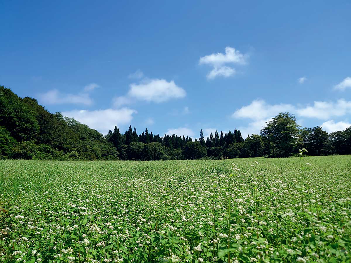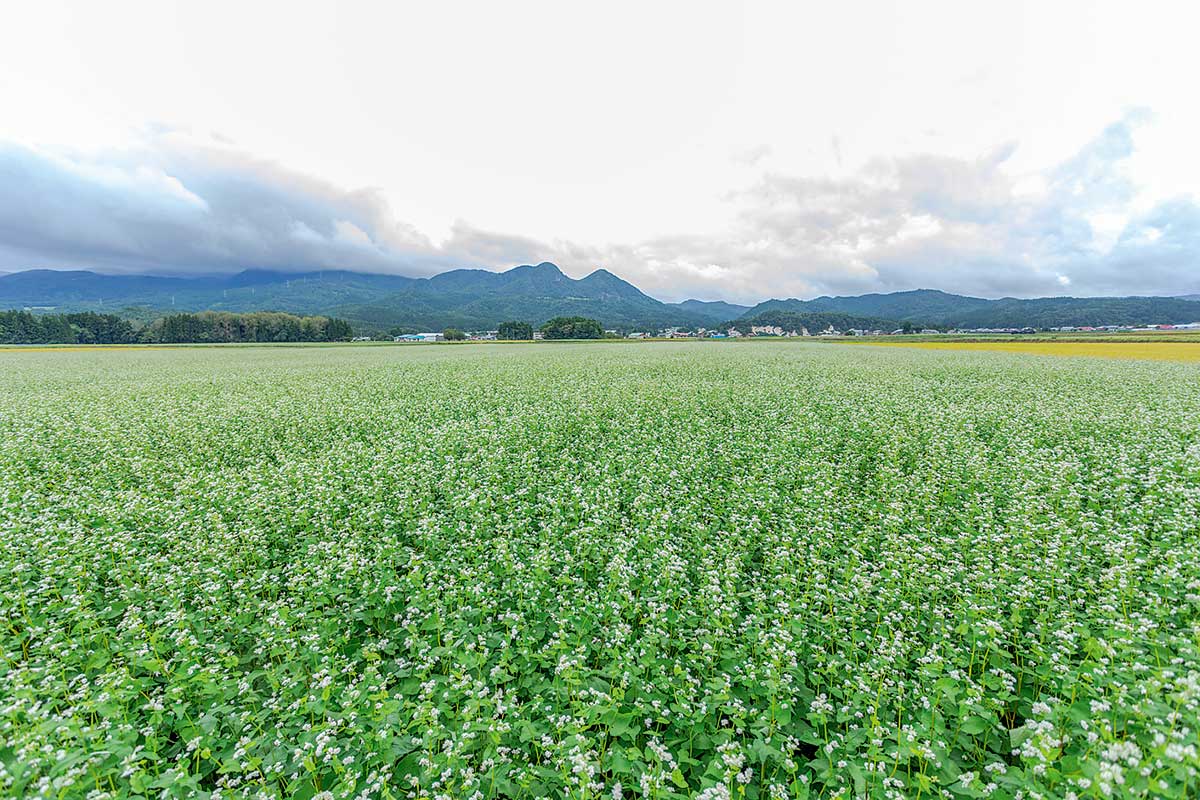 尾花沢市ではそばに最適の気候と水はけのよい土壌を生かして「原種最上早生」を全域で栽培している。
