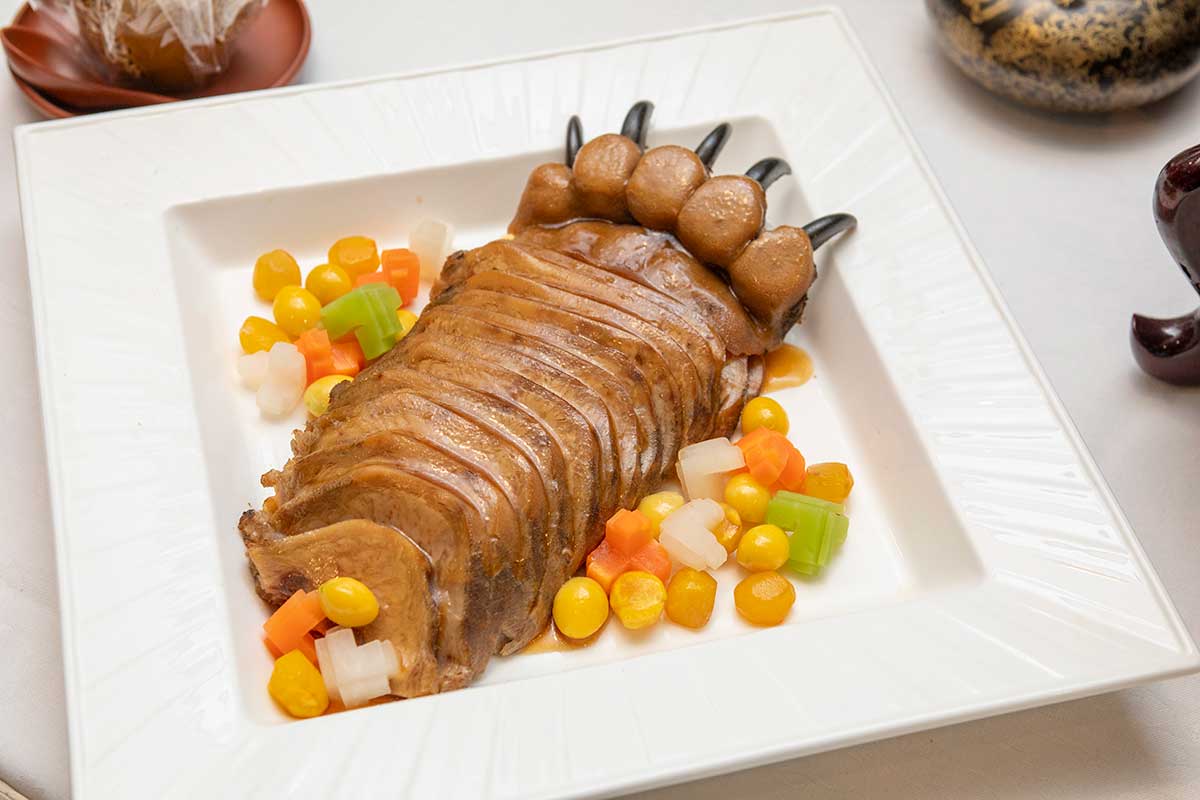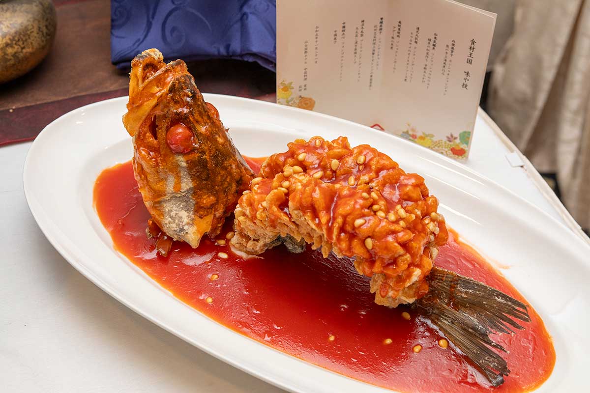 じっくり時間をかけて煮込んだ熊の手料理「紅焼熊掌子」や、スズキをまるまる一匹油で揚げ衣をつけた「松栗鼠鱸魚」など、普段お目にかかることのない料理が並ぶ、貴重な機会となりました。