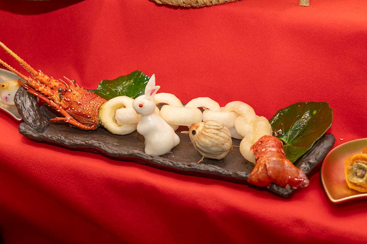 メインの伊勢海老は大根をあしらい、辰年である新たな年に向けて、勢いよく天に上る竜をイメージしたそう。