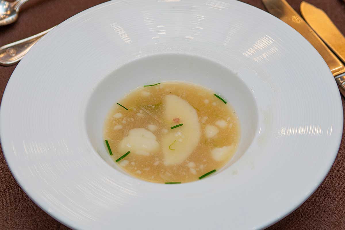 アミューズには田尻産生ハムや宮城県産野菜を使用したスープを。
