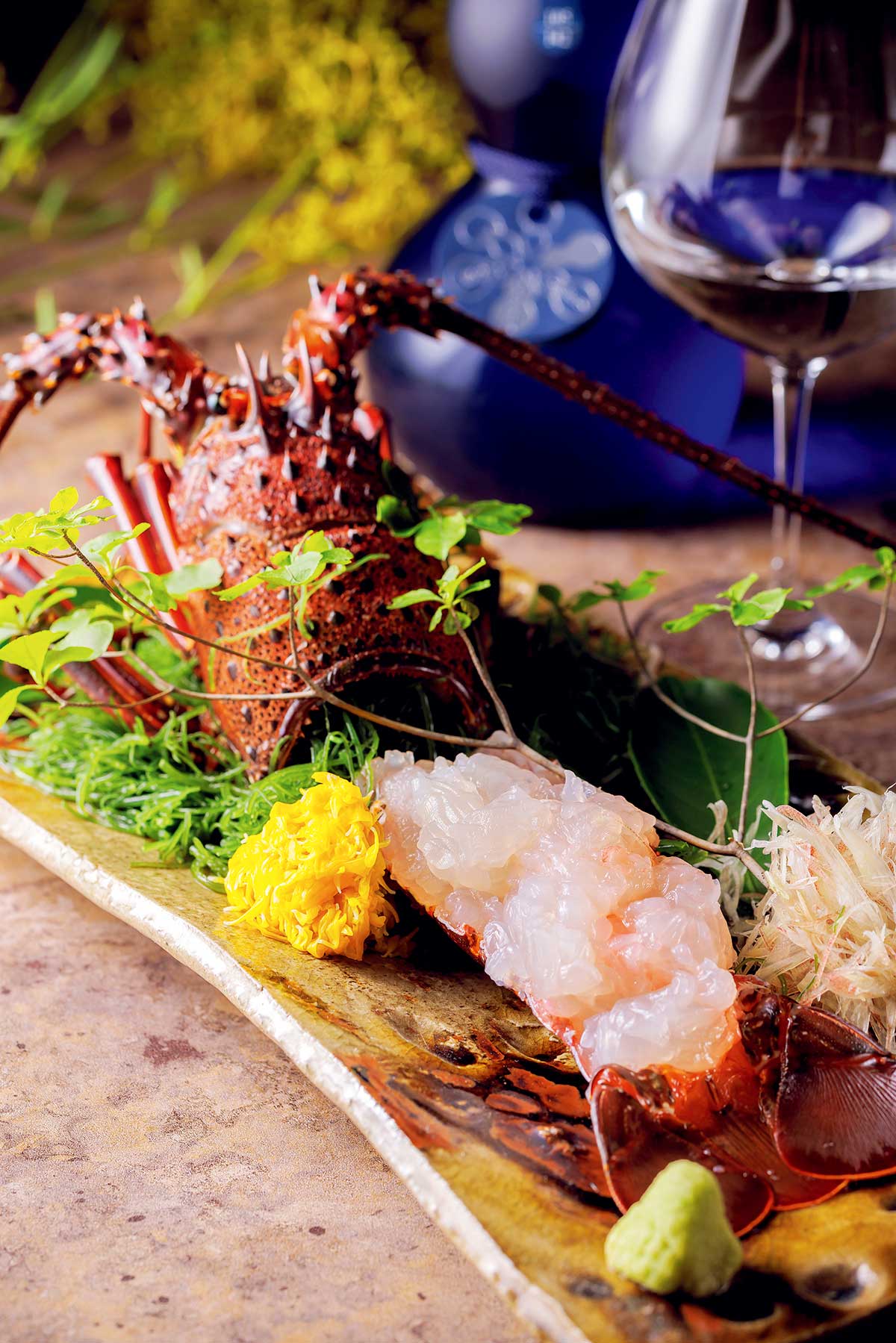 身が透き通る活ものの伊勢エビは、その日の朝仙台港であがったもの。東北の季節を映す美しい盛り付けにも心が躍る。