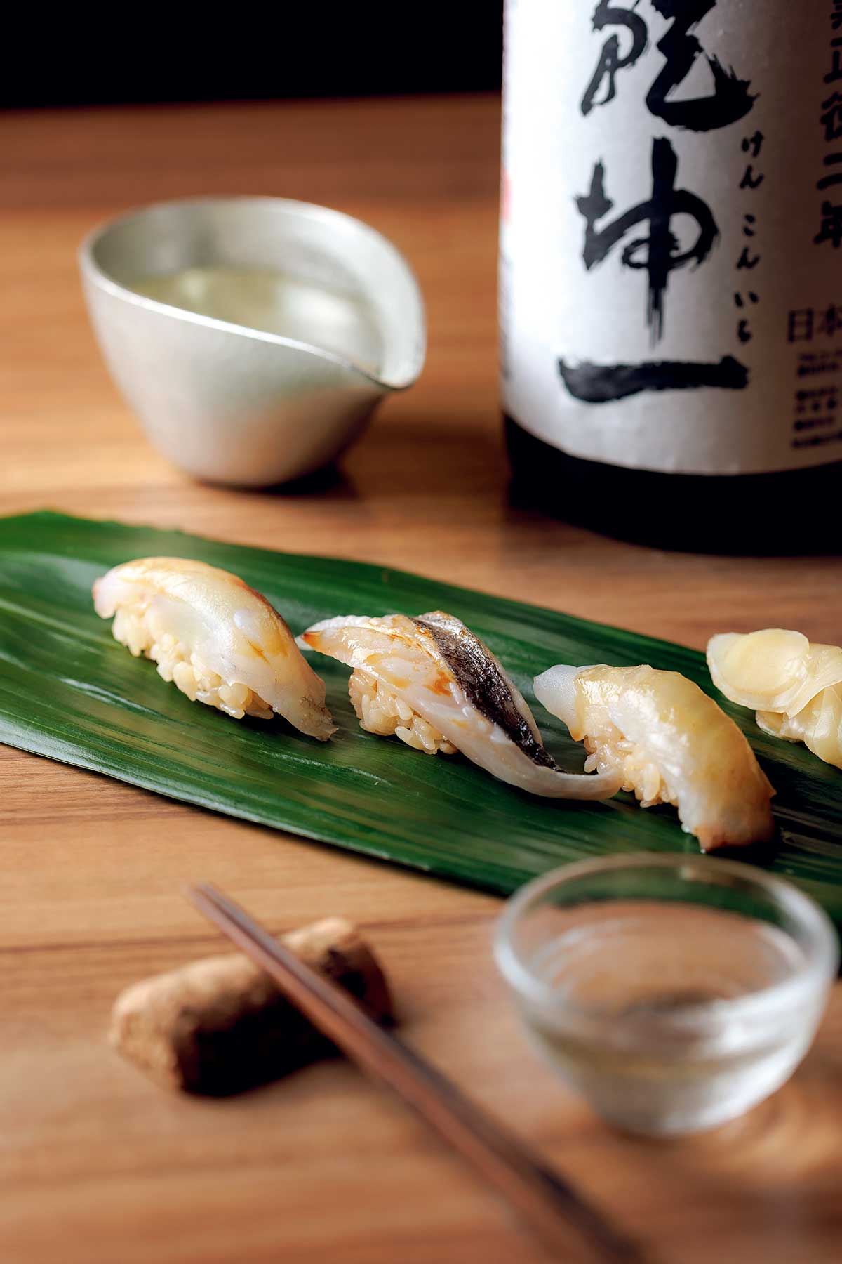 そんな旬のネタを、コク深い赤酢と宮城県産ササニシキを使用した赤シャリで味わう寿司が人気だ。