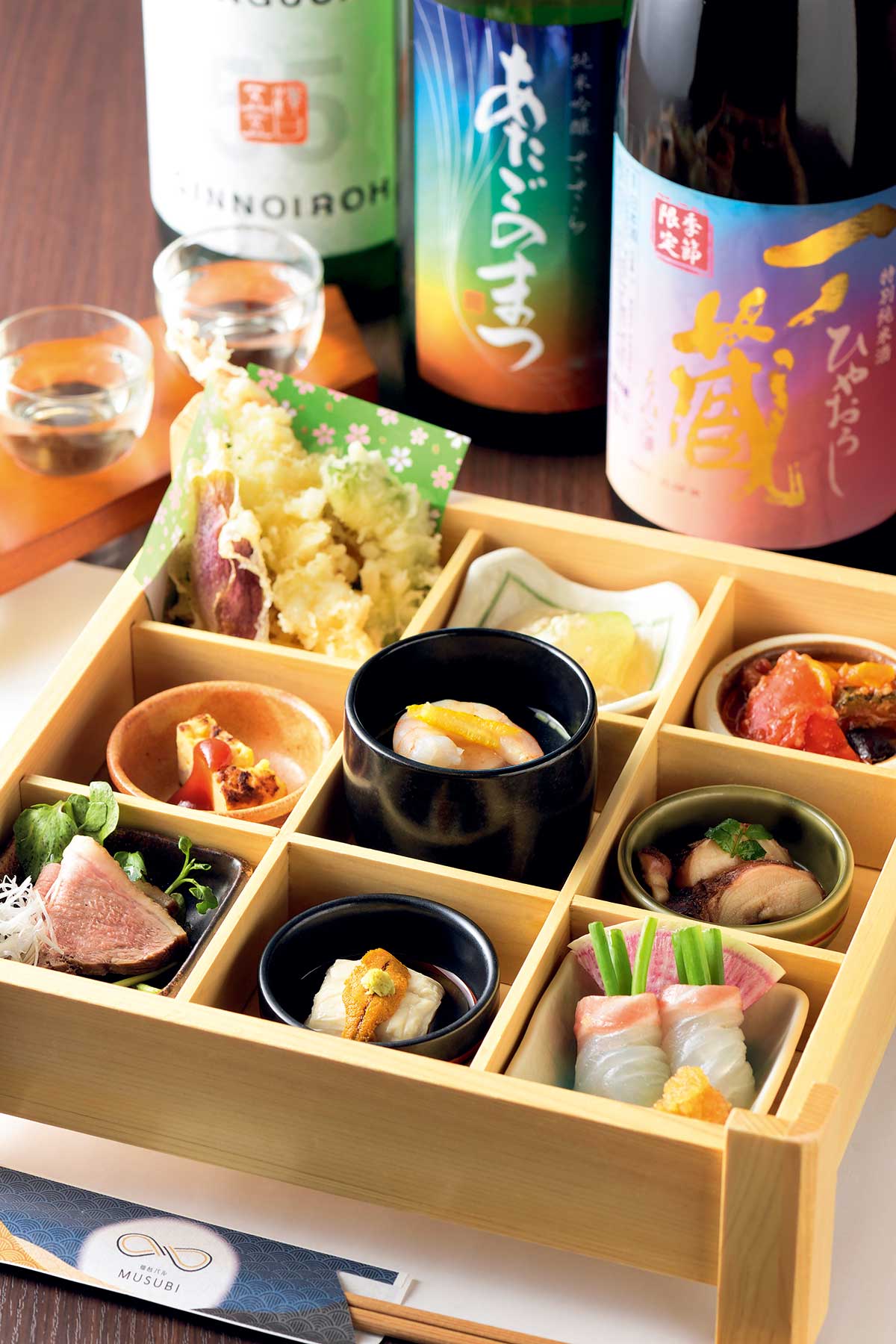 「伊達な八寸」(1980円)は一汁八菜の旬の料理を盛りつけた一品。ランチ・ディナー通して提供。※季節により内容は変わる