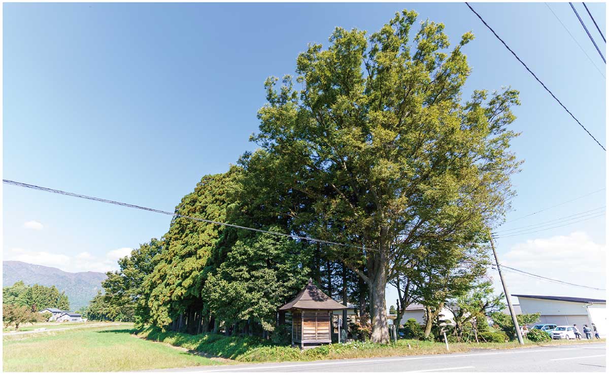 置賜さくら回廊は、南陽市、長井市、白鷹町の桜名所をつなぐ約43kmの観光ルート。白鷹町の薬師ザクラ(写真下)をはじめとする樹齢1200年余りの古木や名木、巨木といった古典桜の名所が20ヶ所ほど点在している。