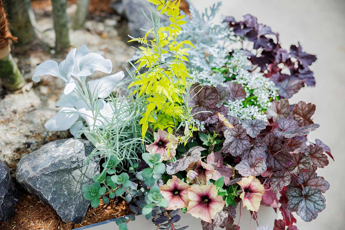 オージープランツやシルバー型のカラーリーフの草花でまとめています。