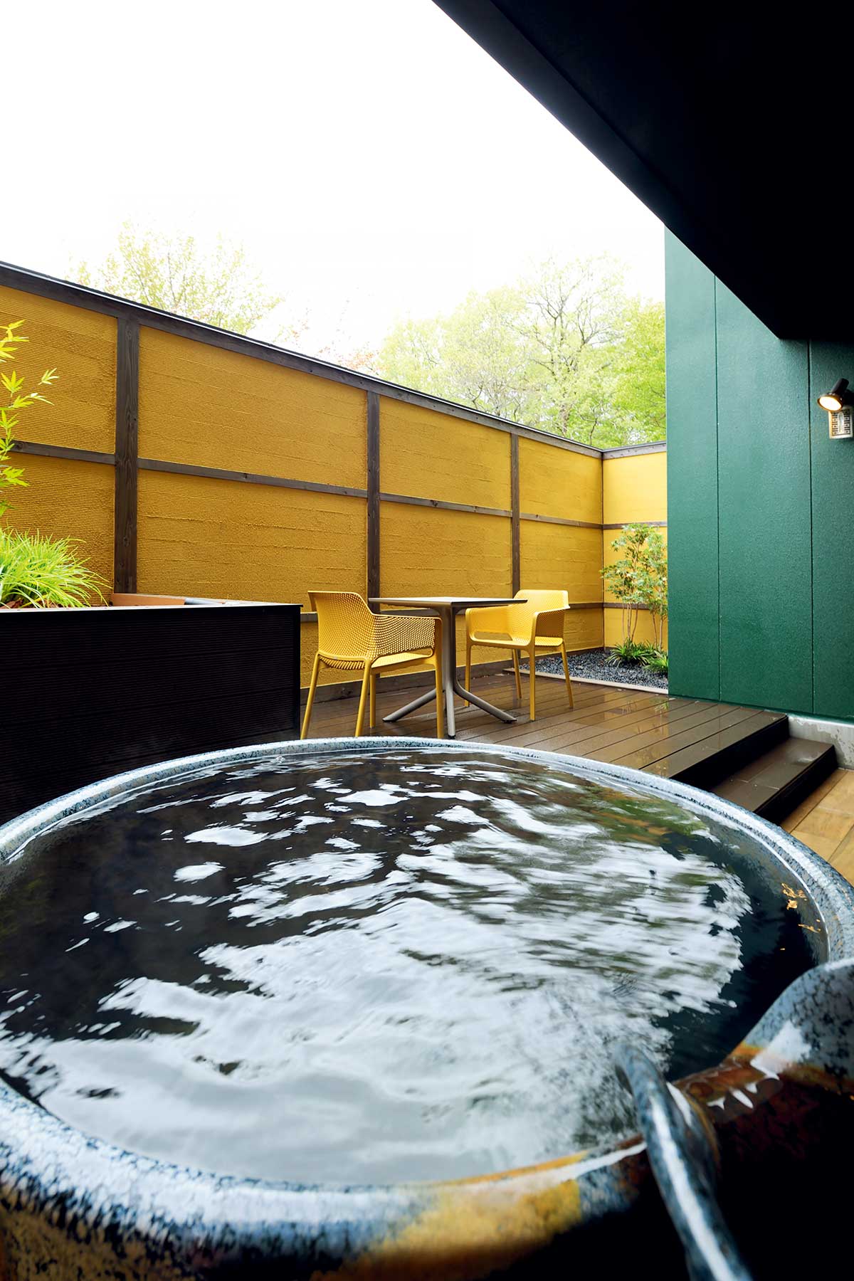 1階の客室には、信楽焼や大理石を使った露天風呂も付いている。
