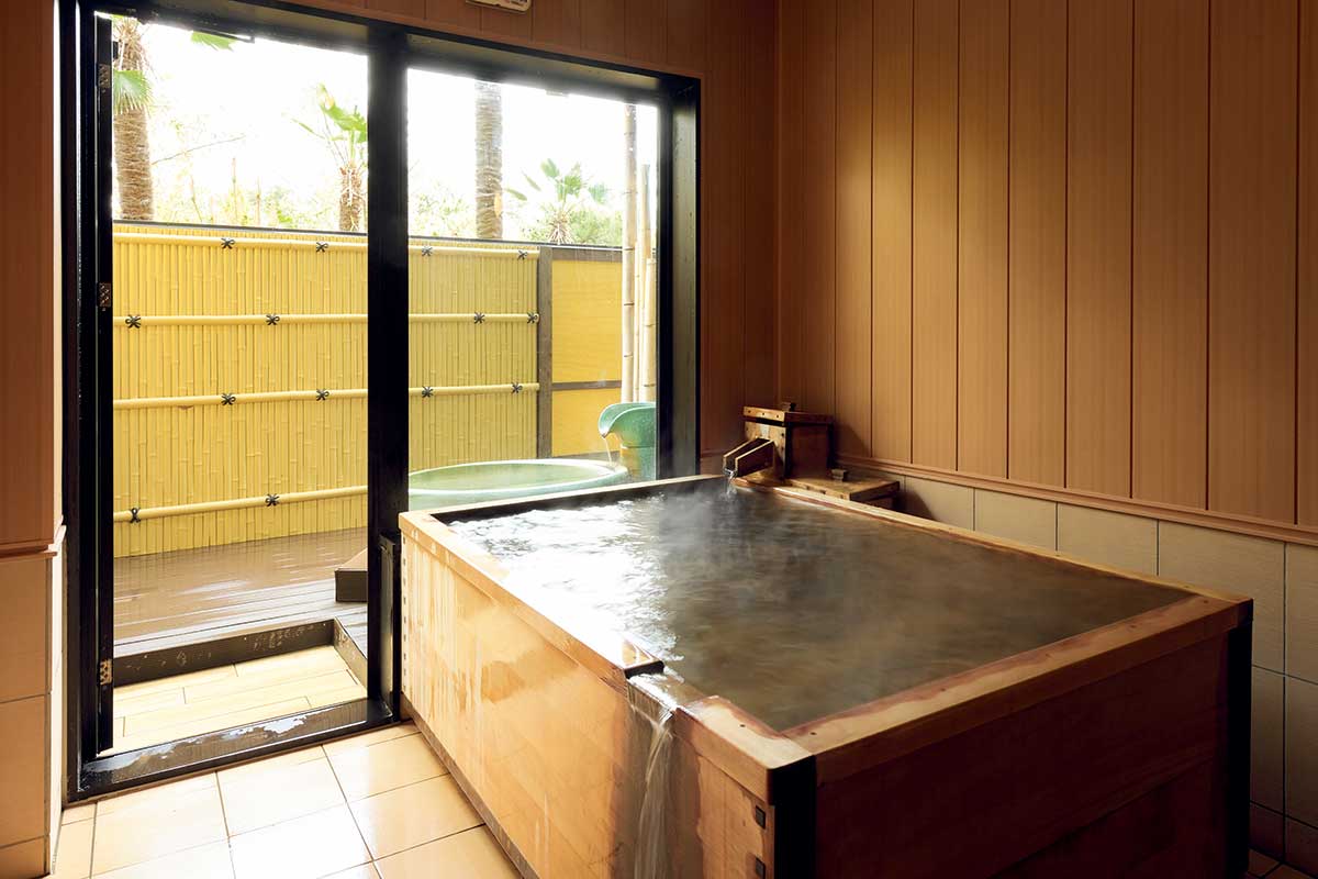 6タイプ・全37室の客室は、そのすべてに源泉100%の温泉を引いた内風呂付き。