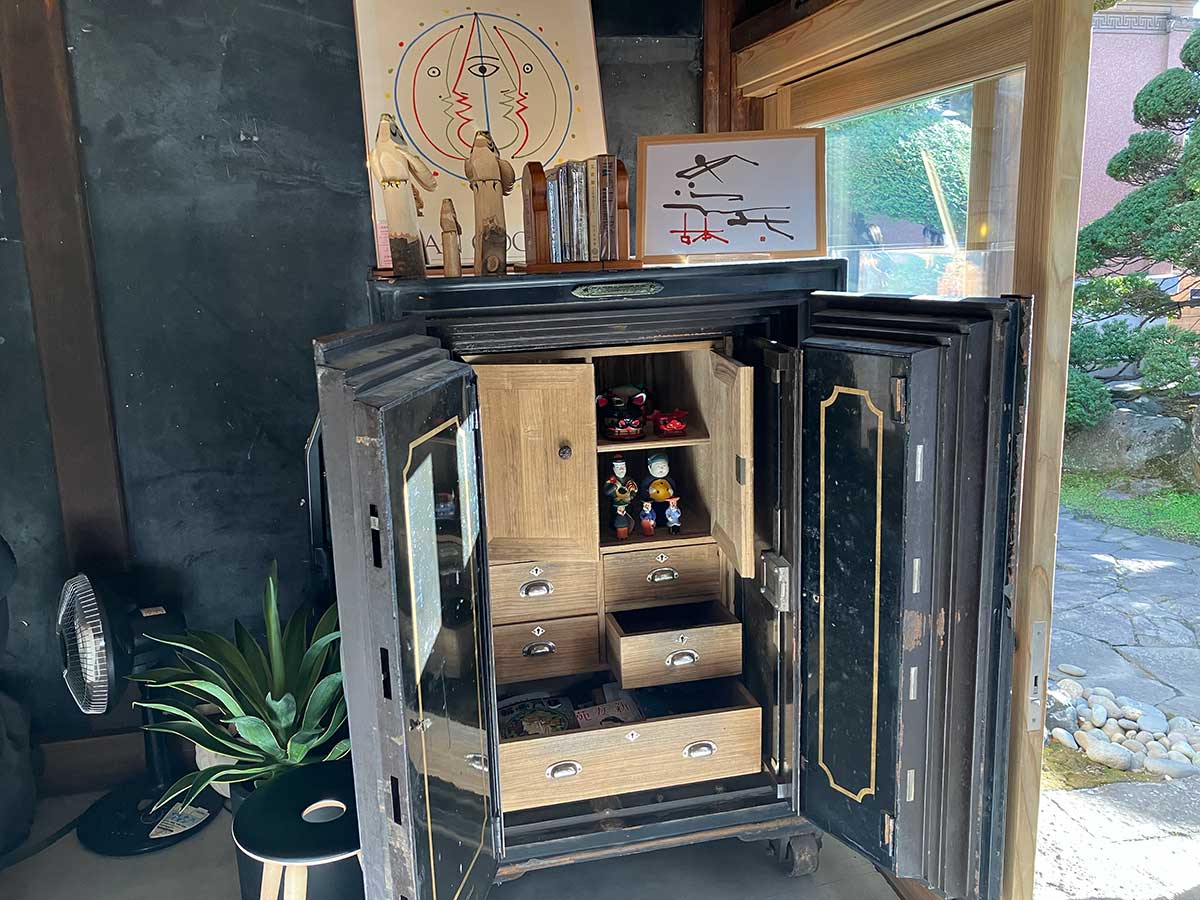 かつて針生家で使われていた金庫にも民芸品が並ぶ。