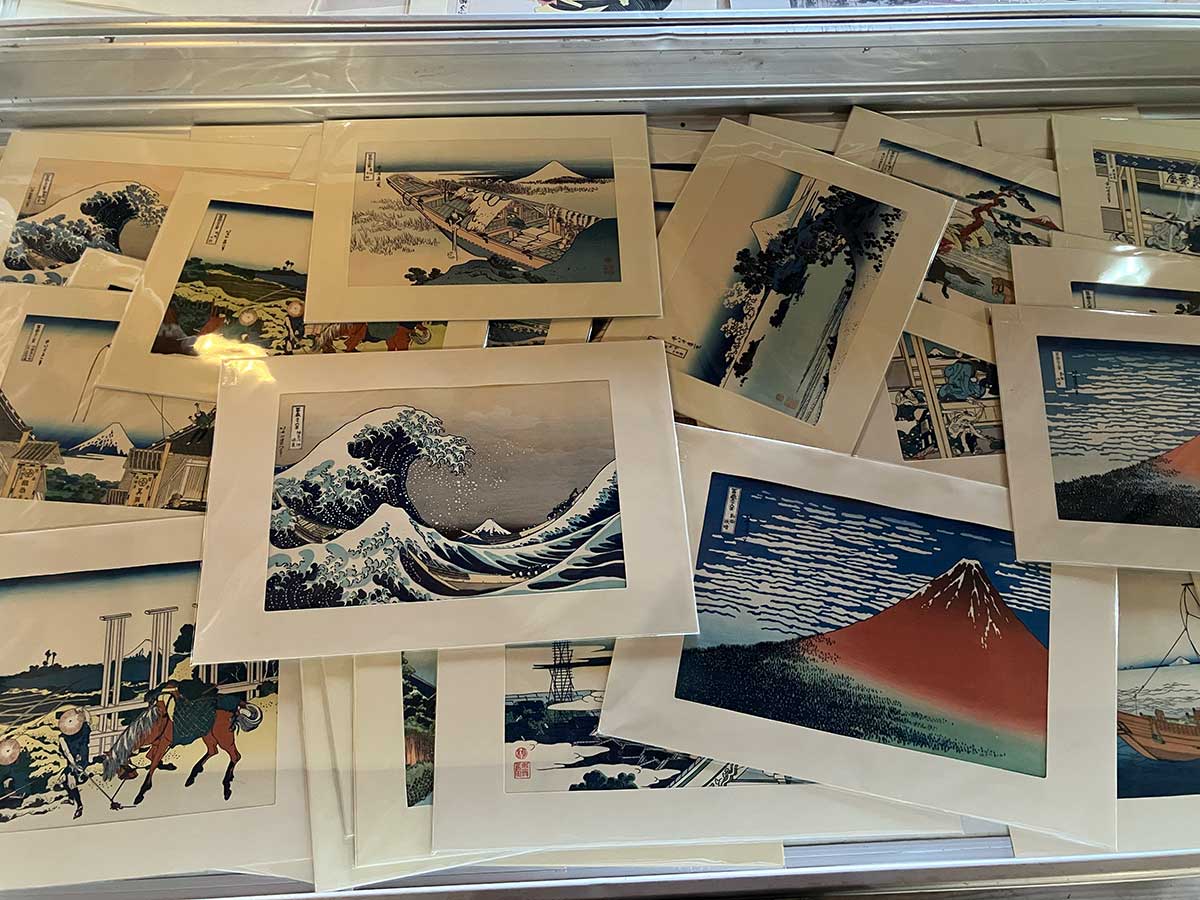 2階のスペースには、浮世絵や現代版画約200点がずらりと並ぶ。