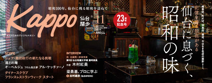 Kappo11月号では「仙台に息づく、昭和の味」と題し、街の歴史を彩ってきた老舗を訪ねました。