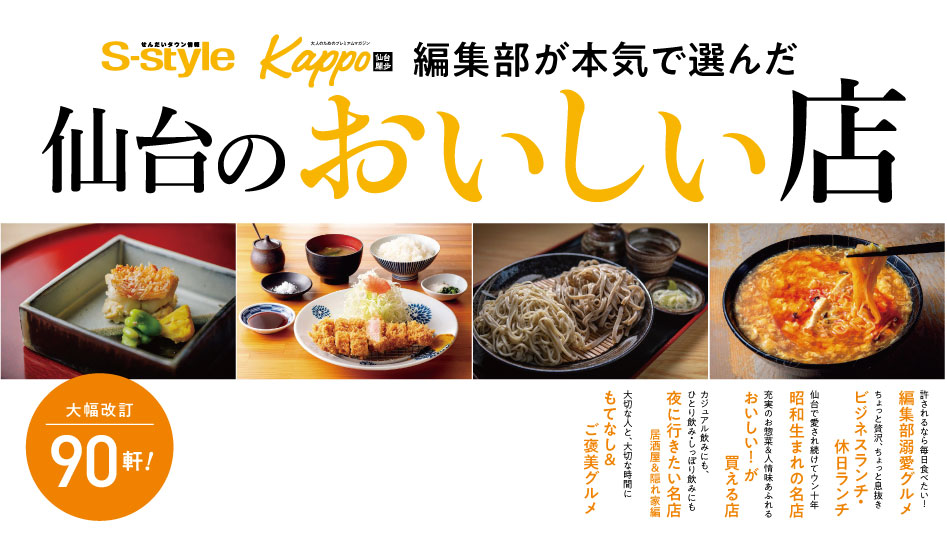 仙台の街を歩き、食べ、取材を重ねてきた『S-style』と『Kappo』の編集部が、本当におすすめしたい店を一冊にまとめました。