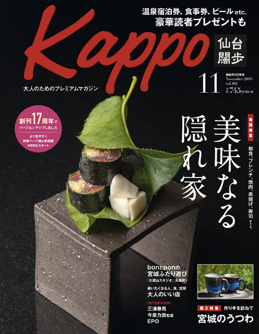 今号からはYouTuberのダヴィデ・ビッティさんが、仙台の気になるスポットを取材する『SHOOT!』がスタート。人気のランチ連載もリニューアルし、一人で行ける“普段着ランチ”と、ご褒美に行きたい“おめかしランチ”を紹介する「ランチmemo~私のとっておき~」になりました。宿泊券や食事券が当たる豪華読者プレゼントもお見逃しなく。
