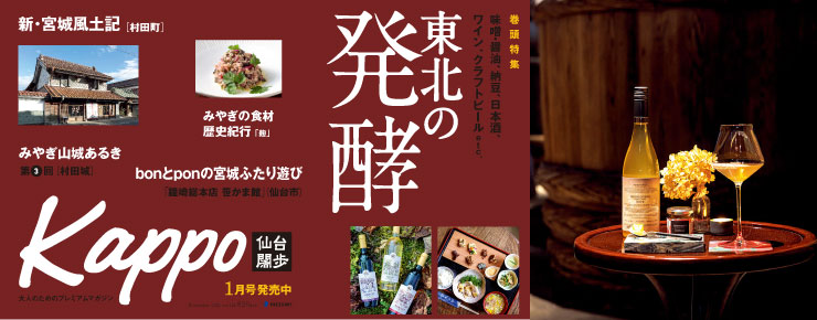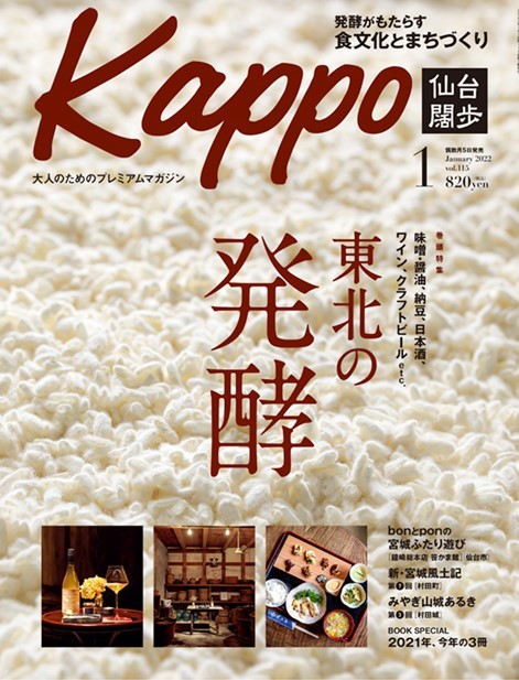 Kappo1月号の巻頭特集は、「東北の発酵」。懐が深い発酵の文化に、編集部が飛び込んできました。発酵王国・秋田はもちろん、かつて醸造の町だった陸前高田市・今泉地区や、宮城・山形・福島でチャレンジを続ける、発酵食にまつわる飲食店・企業をご紹介いたします。