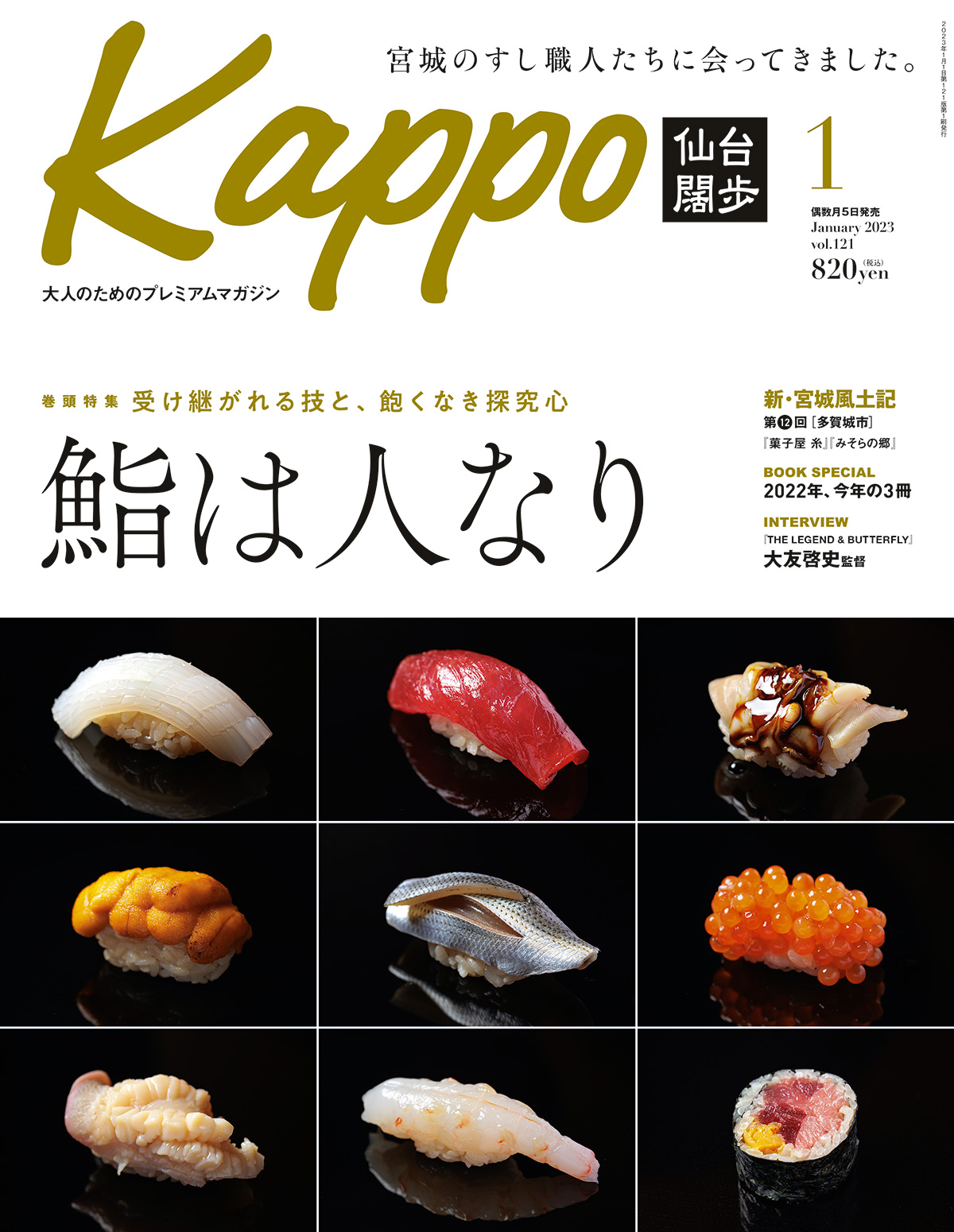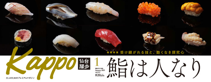 さて、今年最後となる12月5日発売の1月号の巻頭特集は「鮨は人なり」です。宮城には、新しいすし店、若い職人、新しい挑戦を始めたすし店が増えています。鮮度がいいのはもちろんのこと、店の個性を個性たらしめる酢飯の具合や種への仕事は、十人十色。深化を続ける宮城のすし職人を取材しました。一年のねぎらいの場に、自分へのご褒美に。はたまた、お祝いの席で。“いいすし屋”で贅沢な時間を過ごしてください。
