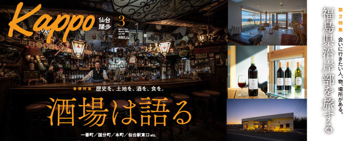 酒場とは、客と店、客同士はもちろん、歴史や酒、食材など、酒場を媒介にさまざまなモノ、コトと繋がれる場所でした。今回は仙台市内中心部を対象に、編集部が街なかを駆け回り、歴史のある店には歴史を、食材や酒に思い入れがある店には食材や酒を、新しい店、リニューアルした店にはその魅力を大いに“語って”もらいました。Kappoを読んで、久しぶりの酒場、なじみの店や掲載店に足を運んでいただけるとうれしいです。