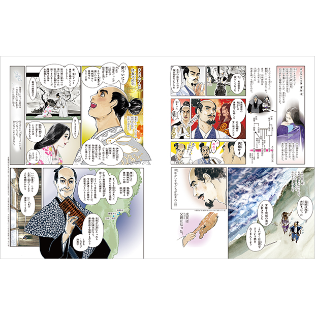 新聞連載時とは判型が異なるため、ほぼ全編改稿。マンガ内には地図などの視覚的な資料情報も掲載。 史実に基づいた最新研究を反映した内容になっています。 ルビ入りで読みやすいのも特徴。